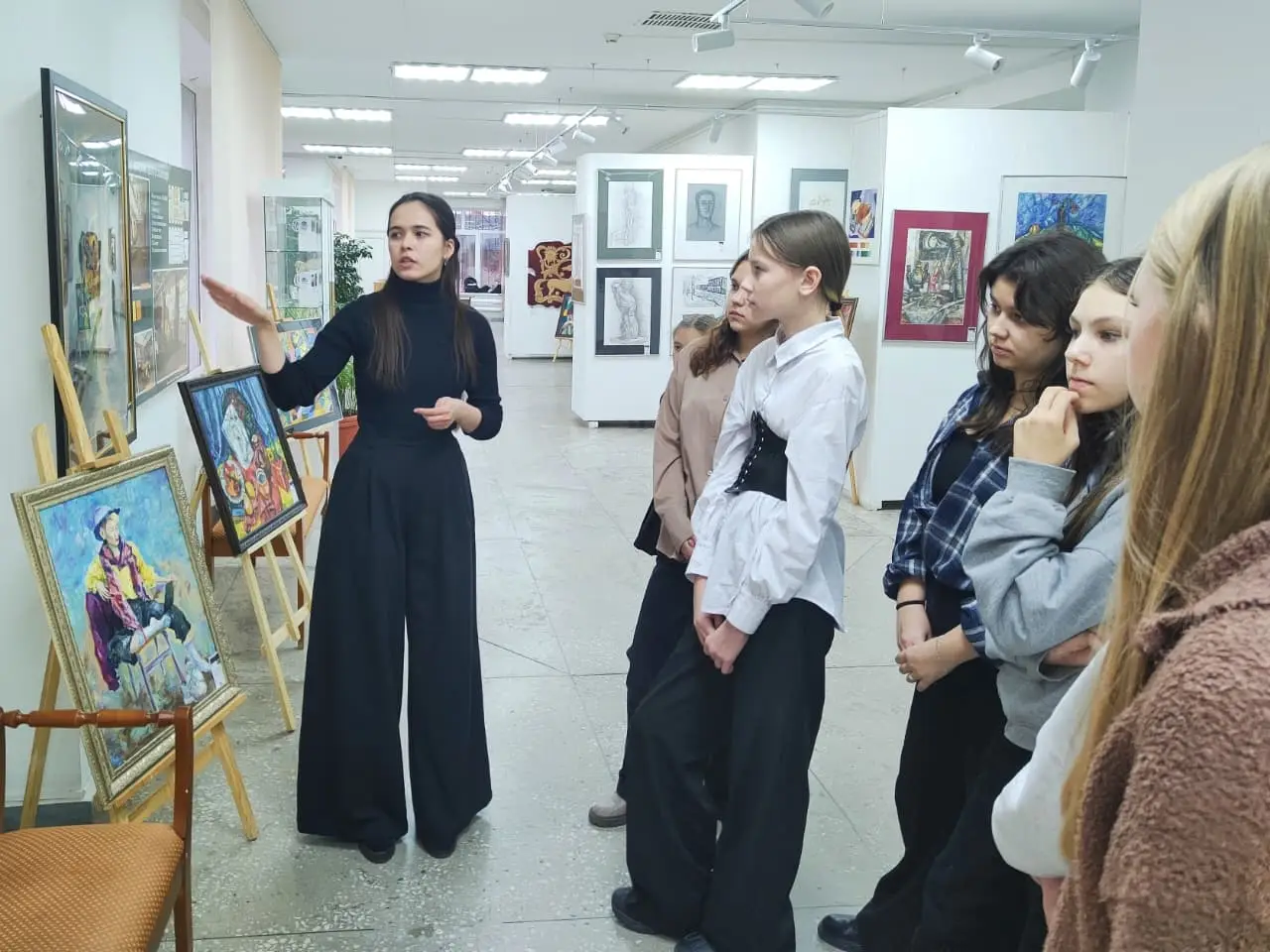 Экскурсия по выставке в честь 25-летия Колледжа дизайна филиала МВЕУ в г.Стерлитамаке Для учащихся 9 класса, 4 декабря была проведена познавательная экскурсия по выставке в честь 25-летия Колледжа дизайна филиала МВЕУ в г.Стерлитамаке Школьники познакомились с ключевыми экспонатами, узнали новые факты, погрузились в исторический контекст и смогли задать вопросы эксперту-экскурсоводу. Формат живого общения и интерактивных заданий сделал посещение выставки не только полезным, но и по-настоящему увлекательным. Экскурсия стала отличной возможностью расширить кругозор, вдохновиться и по-новому взглянуть на изучаемые темы.