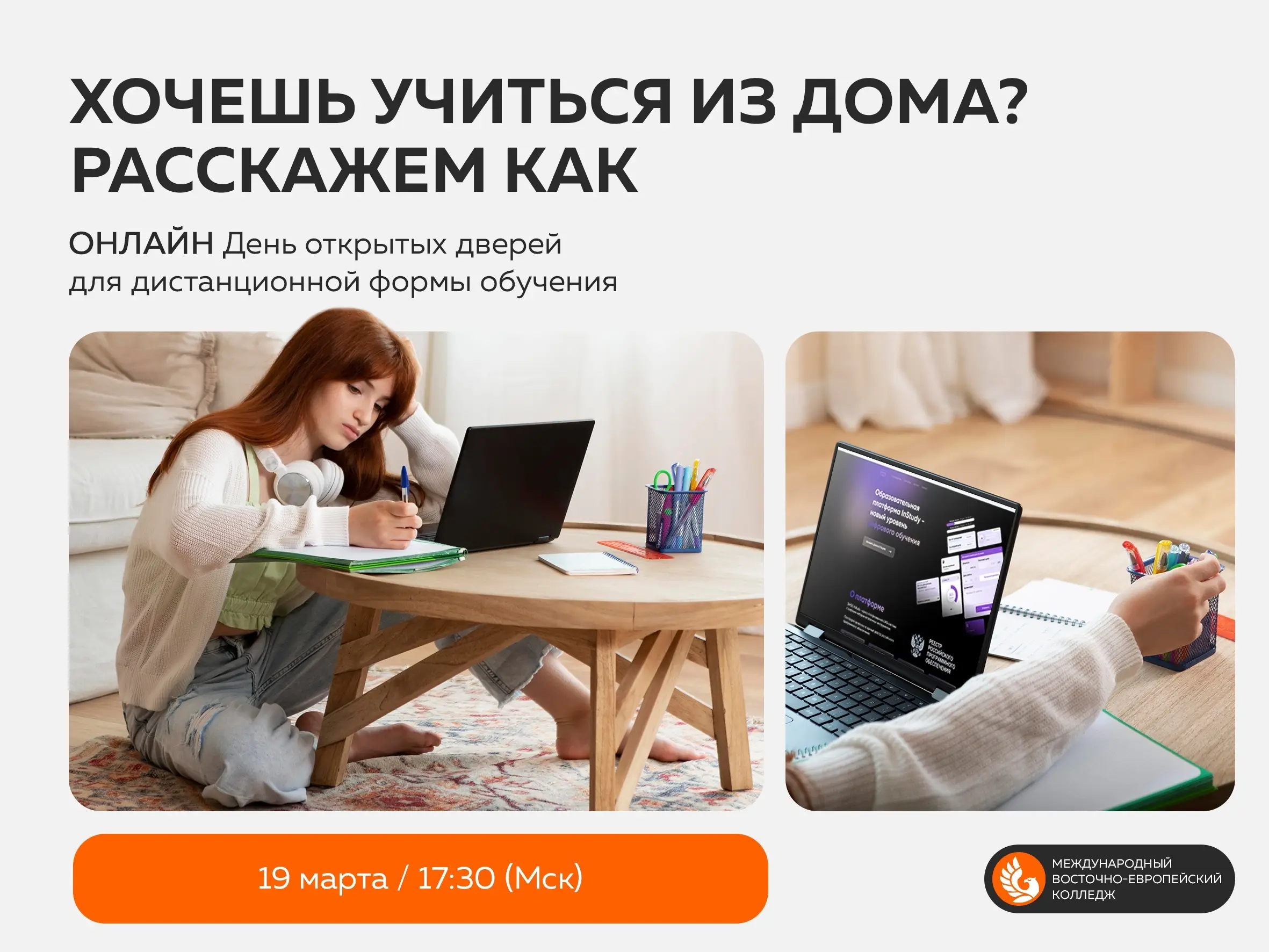 Стильный кампус и современное оснащение аудиторий для очного обучения. Удобная образовательная платформа instudy для дистанционного обучения.